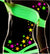 - Colors are a variety of neon pink, neon green, neon yellow and neon orange.